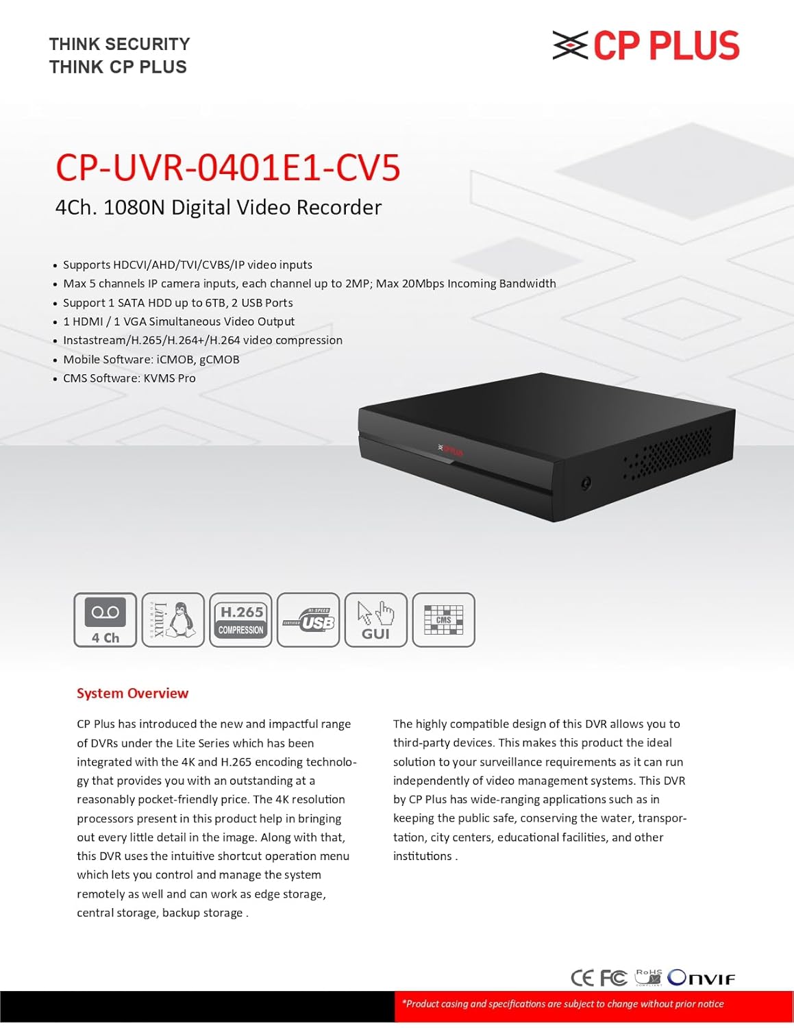 Be the first to review “CP PLUS 4 Channels DVR , CP Plus CP-UVR-0401E1-CV5 (DVR)”