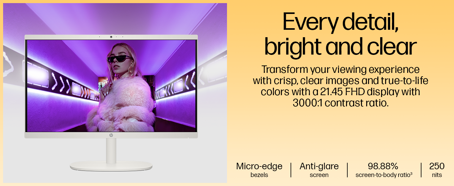 HP All-in-One PC, DG0154IN, Intel Processor N200, 21.45-Inch ), FHD, Intel UHD Graphics, 720P HD Camera , Dual Speakers (Win 11, White)